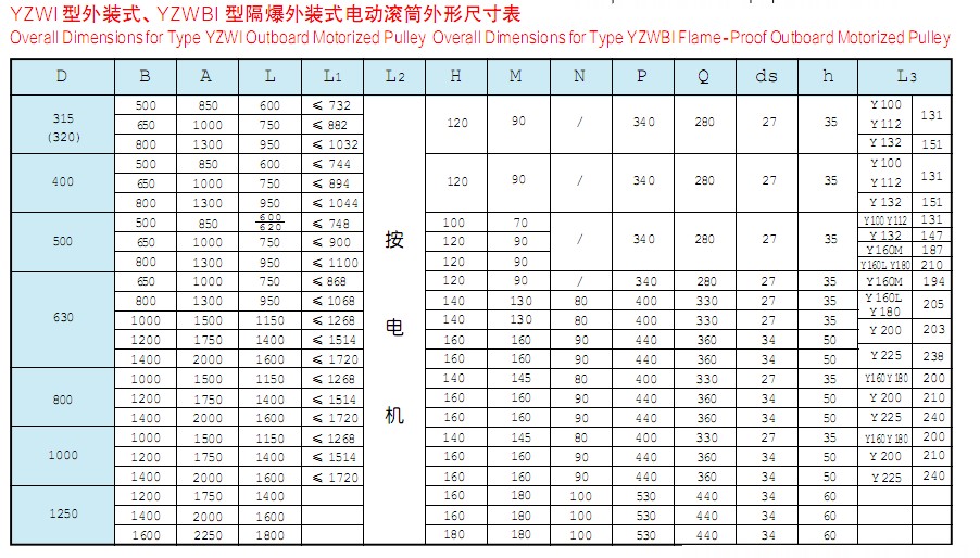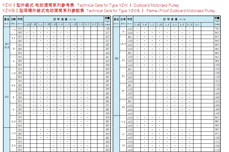 該產(chǎn)品是供各種固定式帶式輸送機(jī)、斗式提升機(jī)、卷揚(yáng)機(jī)等配套的新型驅(qū)動裝置。其內(nèi)部采用行星擺線減速機(jī)構(gòu),使電機(jī)外露與滾筒直聯(lián),具有承載能力大、過載能力強(qiáng)、傳動平穩(wěn)、噪音低、壽命長,使用維修方便,操作安全可靠等優(yōu)點(diǎn)??蓾M足各種逆止、包膠等要求。隔爆外裝式電動滾筒其隔爆標(biāo)志位dl、dllAT4。dl適合于有甲烷或煤塵礦井中,dllAT4適合于有I、IIA級T2~T4組爆炸危險(xiǎn)性混合物存在的場所,dllBT4適用于有I、IIA、IIB級T2~T4組爆炸危險(xiǎn)性混合物存在的場所。
