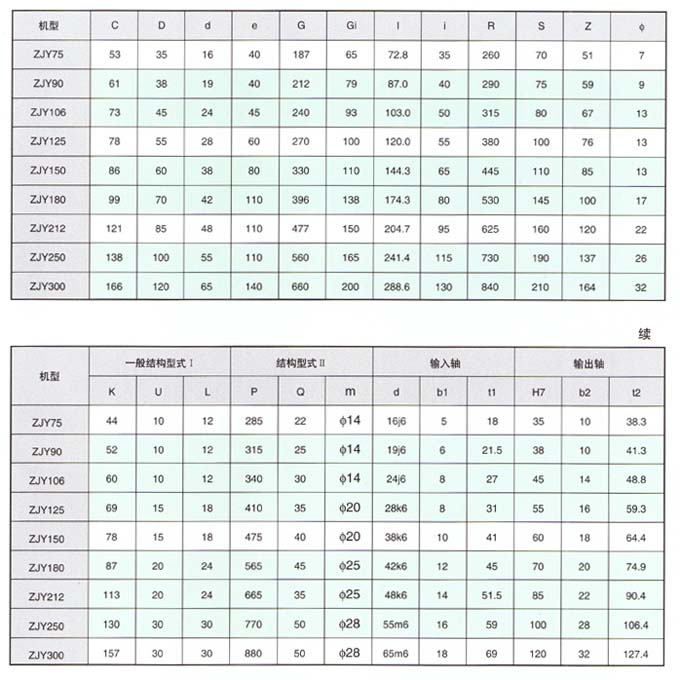 1、ZJ型軸裝式減速器用于輸送機(jī)和斗式提升機(jī),以及其它懸掛安裝的通用機(jī)械的傳動(dòng);